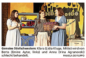 "Es gibt zahllose Fassungen vom Grimm´schen Aschenputtel, aber diese dürfte zu den amüsantesten gehören. Sogar im Publikum wurde nach der Prinzessin gesucht: "Wer möchte den Schuh anprobieren?", fragte Felix Kramer alias Königssohn und wurde rasch fündig.