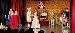 In der bewährten Regie von Ralph Langlotz ist das 17-köpfige Ensemble in 12 Rollen zu erleben - manche Rolle ist doppelt besetzt, mancher Darsteller spielt zwei Rollen.
